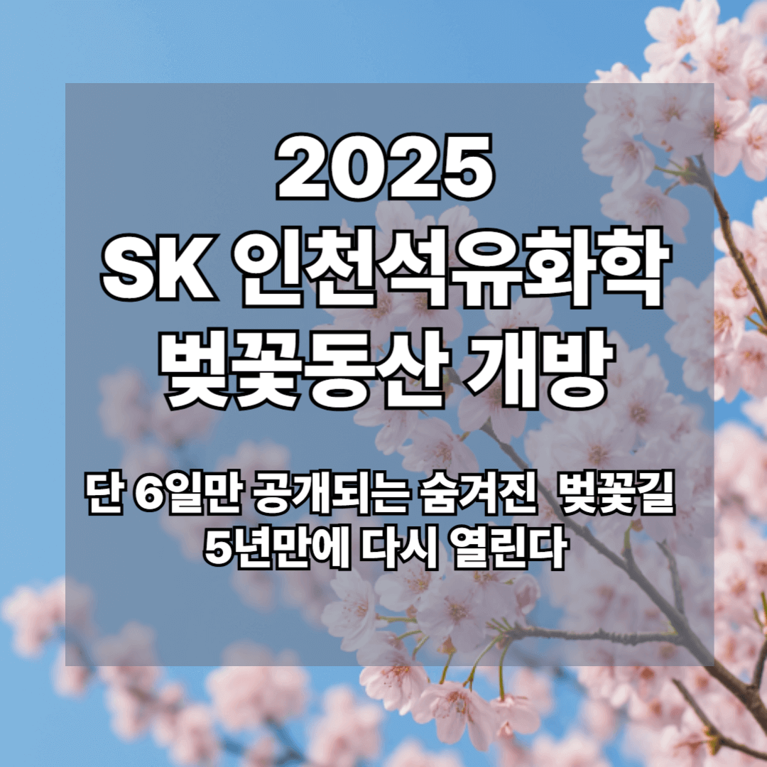 인천 서구 원창동에 위치한 SK인천석유화학 사업장 내에 조성된 벚꽃 산책로입니다. 총 3만 5천 평(11만 5천여 m2)의 부지에 600그루 이상의 벚꽃나무가 심어져 있으며, 1.5km 산책로를 따라 이어지는 장관은 매년 많은 시민들을 매료시켜 왔습니다.